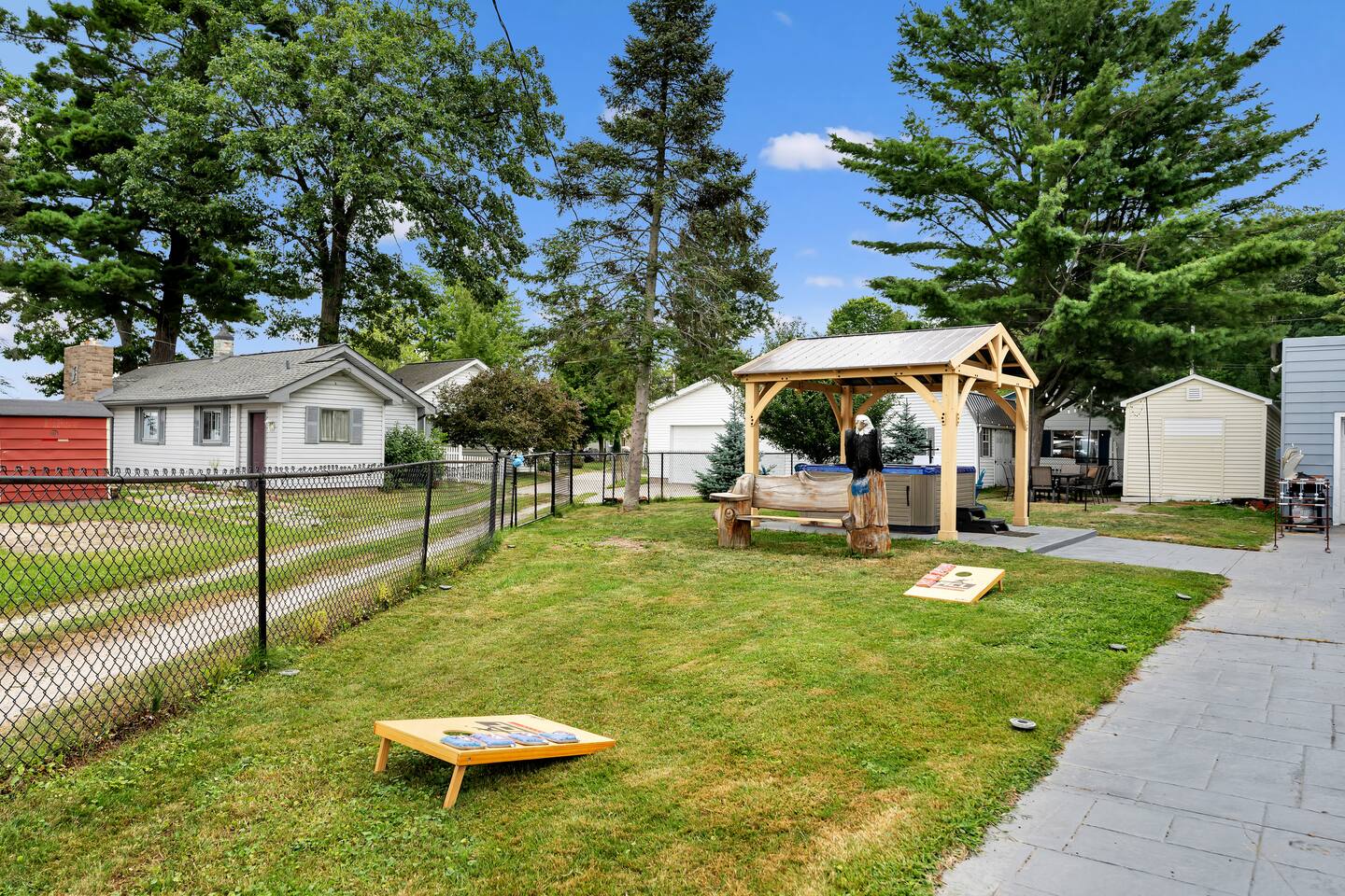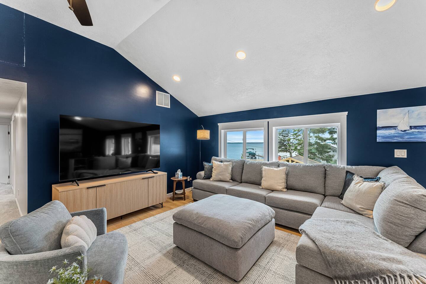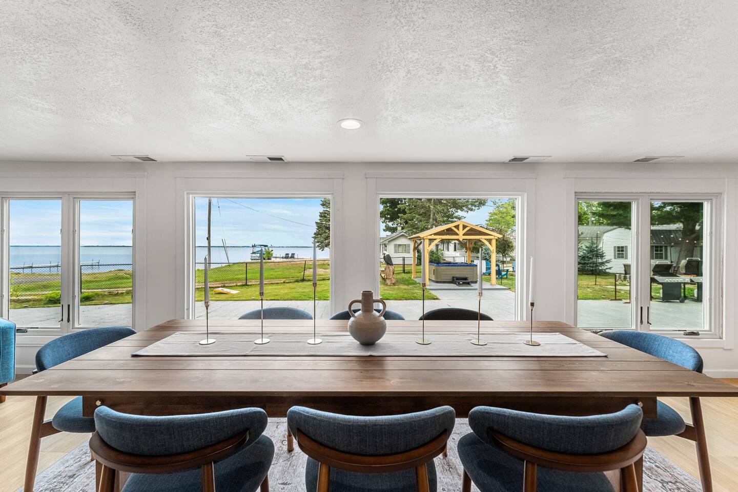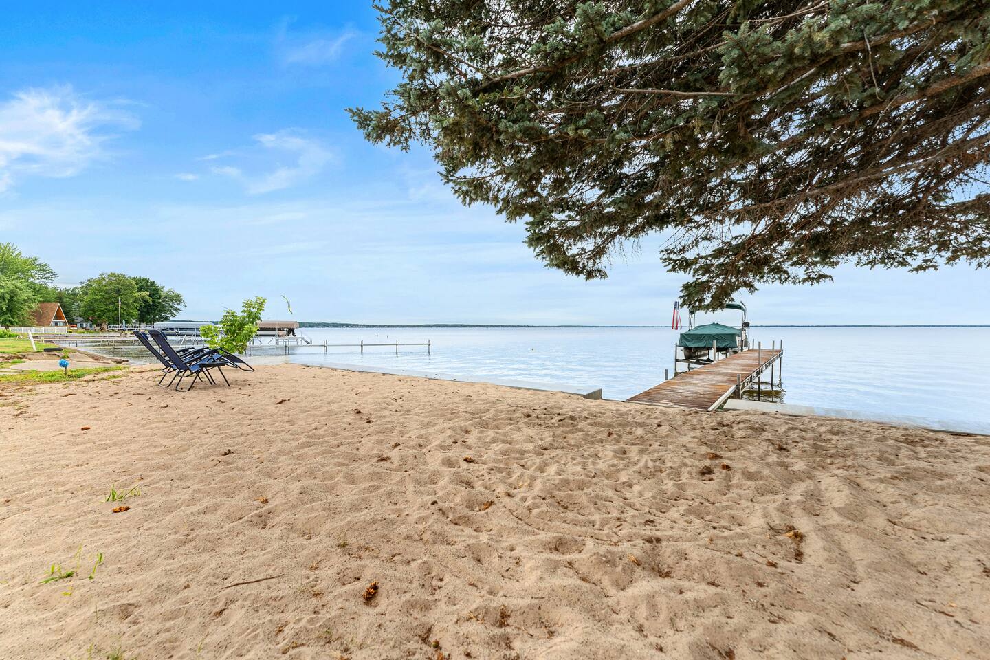 🏡 Home Highlights: 🏖️ Private Beach – Private Dock – Lakefront 🍽️ 2 BBQ Grill & Outdoor Dining – Perfect for cookouts by the water 🏓 Ping Pong & Foosball – Family-friendly indoor fun 🧩 Board Games Galore 🌿 Huge Backyard – Cornhole, Life-Size Chess, Bocce Ball 👨🍳 Fully Stocked Kitchen – Everything you need to cook and entertain 🧊 Stand Alone Ice Maker The space 🛋️ More About the Home: - Bright and open layout with large windows and natural light throughout - Spacious living room with comfortable seating and big-screen TV - Dining area perfect for group meals - Fully stocked kitchen with stainless steel appliances including stand alone ice maker and large island - Bedrooms with cozy beds, storage, and family-friendly layout - Indoor ping pong, arcade games, life size chess, and foosball table for endless entertainment - Outdoor dining area with 2 BBQ'S with lake views - Private Beach - Private Dock - Private Lake Frontage - Oversized backyard perfect for families with kids or groups wanting space